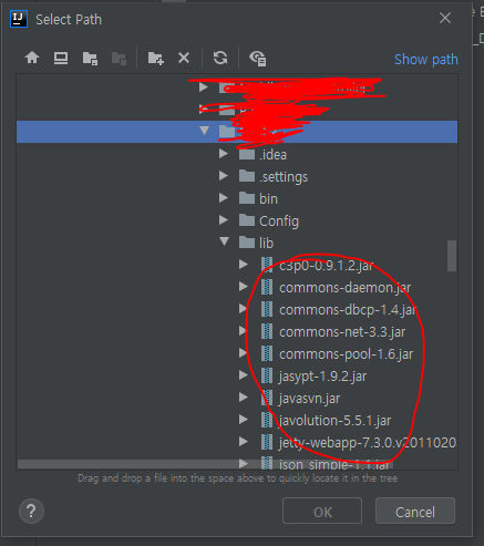 6. library 경로 - jar라이브러리 파일 선택(다중선택 가능)