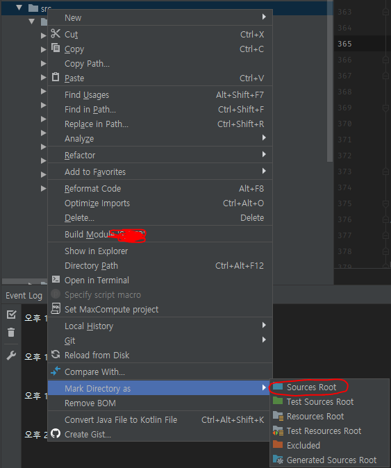 1. src 디렉토리를 Source Root에 추가한다.