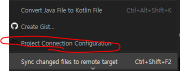 소스파일을 우클릭하여 Project Connection Configuration 메뉴를 클릭한다.