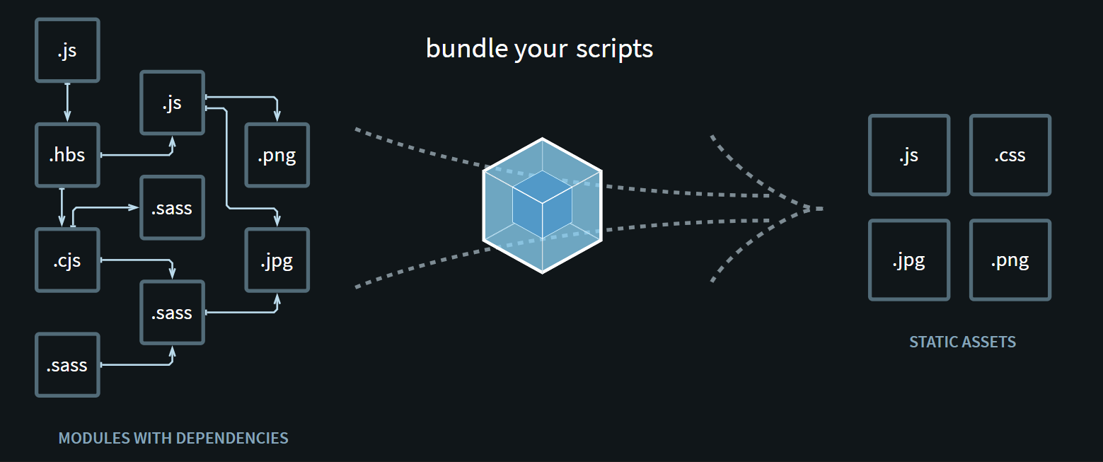 WebPack 공식 홈페이지의 메인화면에서 돌아가는 이미지를 보면 보다 쉽게 이해가 될 것이다.
